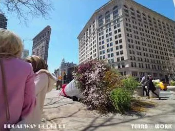 The 'Broadway Bouquet’ is a 40' feet long by 8' high temporary public art installation that was displayed at the intersection of Broadway and 24th Street in the Flatiron District of Manhattan on Saturday April 21, 2018. The art installation was a featured piece of the NYC/DOT Car Free Earth Day event. The annual event closes thirty blocks of Broadway from Times Square to Union Square to vehicular traffic, creating a temporary pedestrian space for people to explore for the day. A variety of environmental programming including public art, musical performances, and various exercise activities were introduced by city agencies and nonprofit organizations along Broadway to promote activism and education surrounding climate change, sustainability and rethinking how we use our city streets.