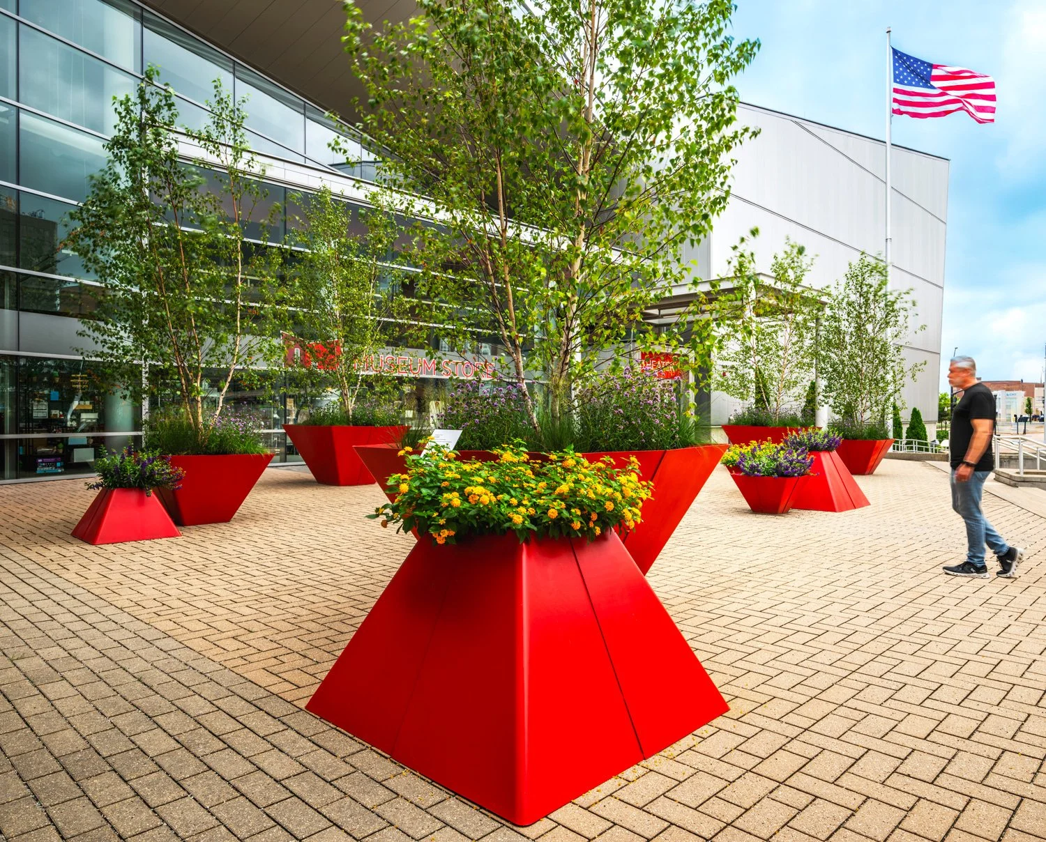 Terrain Work’s “The Fold Garden” was recently dedicated at the Peoria Riverfront Museum in memory of the late Pat Hagenbuch, community leader, business owner, and museum member. The bespoke folded sculptural steel planters and accompanying plantings were designed by Terrain Work and fabricated by Philippi-Hagenbuch, Inc. as a gift from her daughter and son-in-law, Danette and Josh Swank. The new garden transforms the previously unused plaza into an outdoor gallery and event space for future museum visitors to enjoy. To learn more about the “Fold Garden” click here.